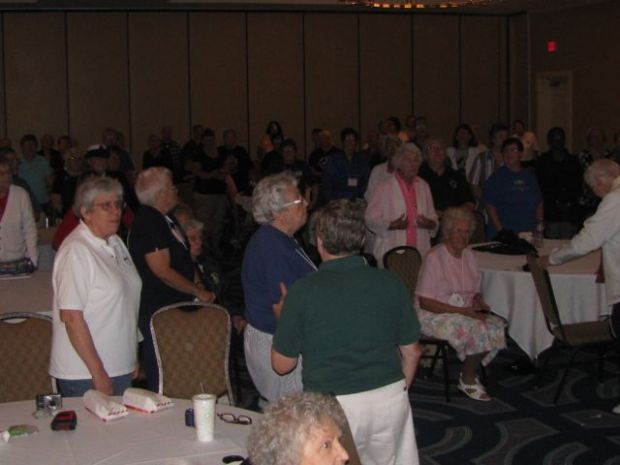 At the WAVES National Convention in Orlando, Florida on September 21, WAVES (World War II-era and later) sing the WAVE anthem “WAVES of the Navy.”