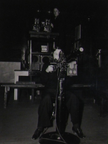 This 3A-2 trainer shoots a beam of light at the moving picture of a pane projected on the screen. Movement of the place is controlled by the operator of the projector, a WAVE who completed the course 2 weeks earlier.