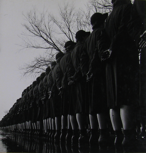 WAVES are “at ease” during the Captain’s Inspection at the Cedar Falls boot camp in February 1943.