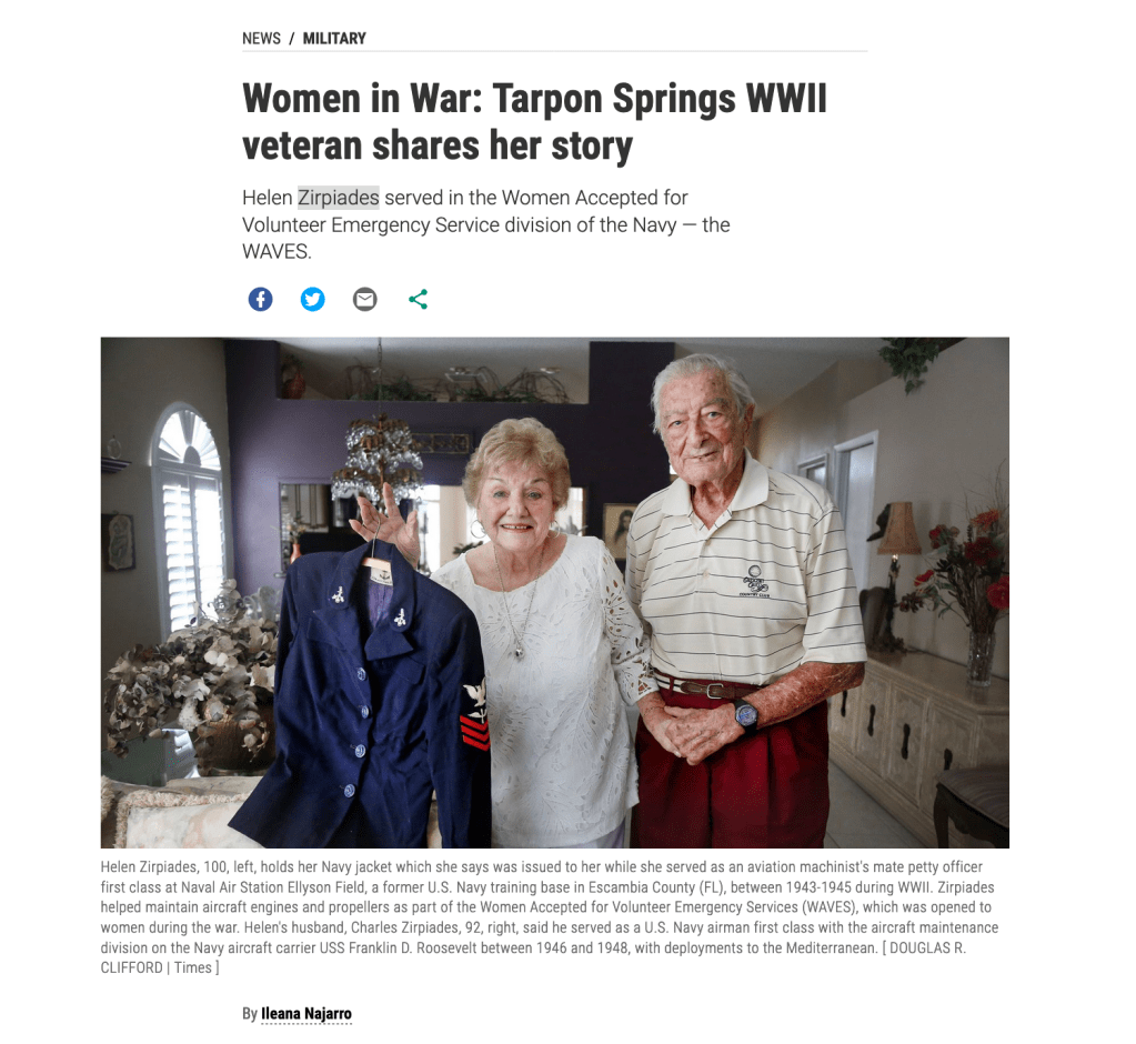 We were so excited to talk with Ileana Najarro of the Tampa Bay Times about the WAVES and World War II.