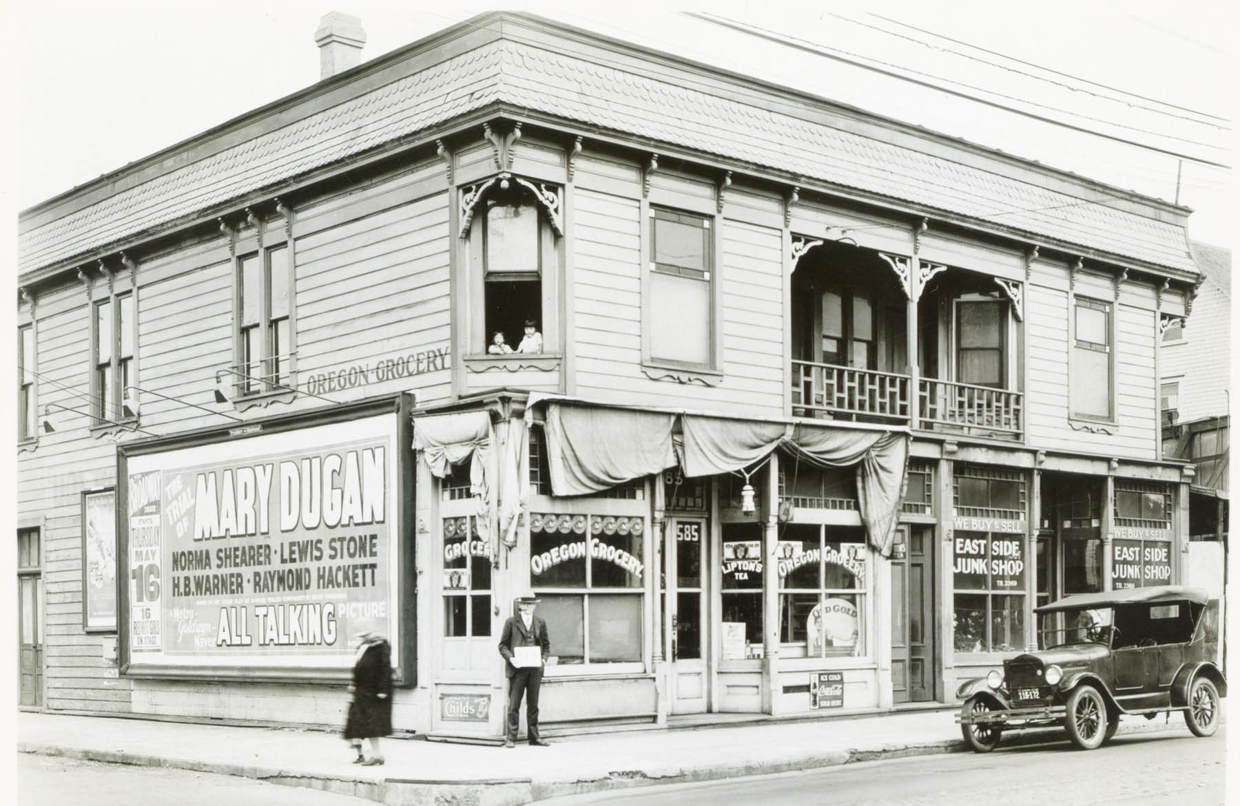 This old building on the northwest corner of NE Union at Graham Street had quite a distinctive look. The photographer managed to capture a few of the neighborhood denizens, including the two children watching from the second floor window.