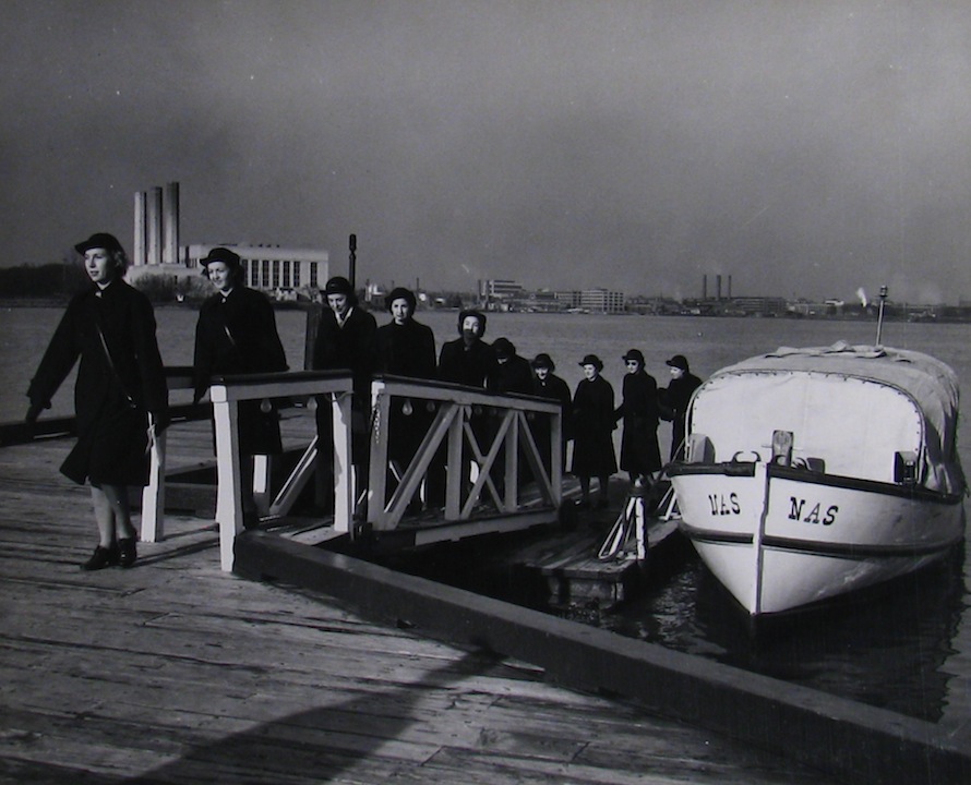 How about this for a daily commute? At Anacostia Naval Air Station in Washington, DC, WAVE rode to and from work across the river in a power driven launch designed for sea duty.