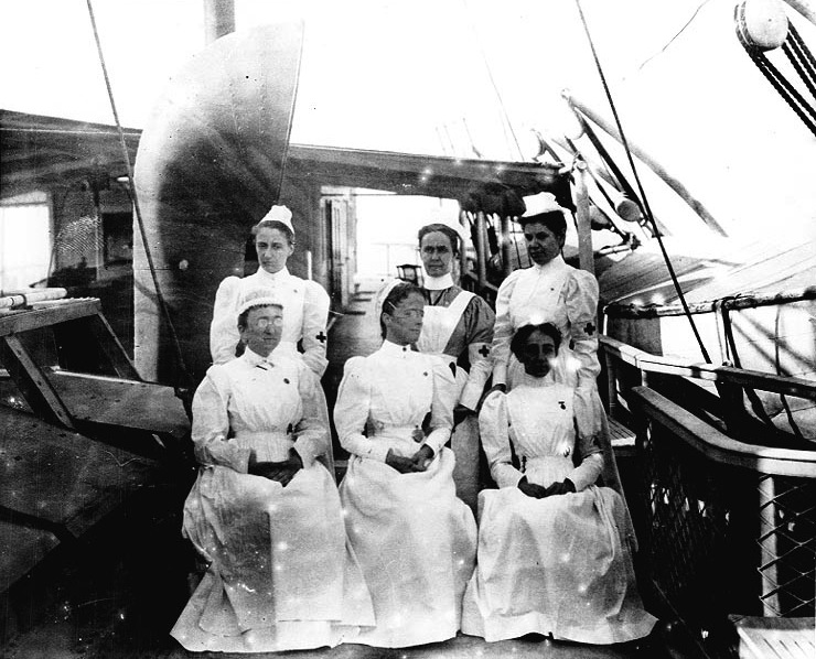 This image is of contract nurses serving in Cuban waters aboard the Army ship Relief. It comes from the collection of the Naval History and Heritage Command.