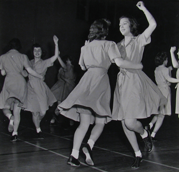 Physical education took many different forms. These WAVES are square dancing their way to fitness.