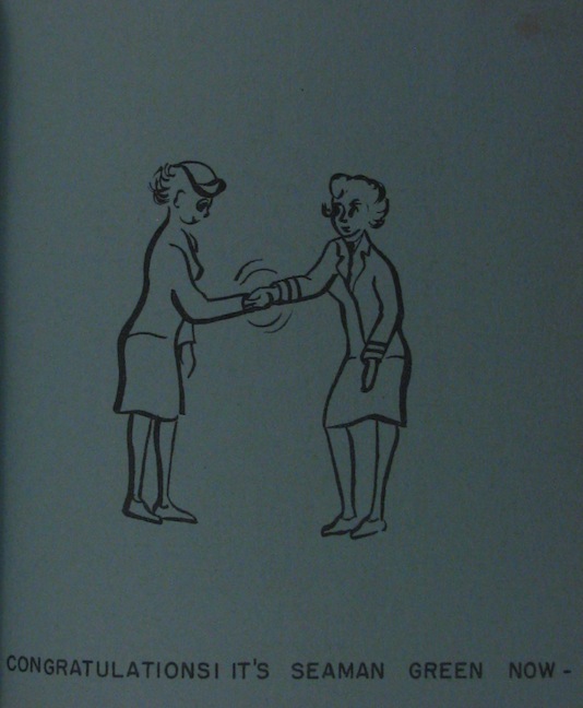 Before thinking that the comic was criticizing the uniform, remember that the WAVES’ uniform was couture-designed by the famous designer Mainbocher – and that while WAVES did wear a uniform on the outside, they could choose their own nightclothes and undergarments.