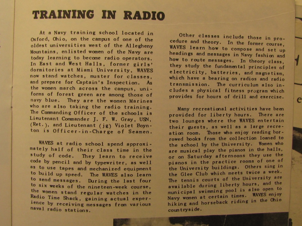 This image appeared with the story about training in radio in the December 1943 edition of the WAVES News Letter. WAVES trained at University of Wisconsin, Madison.